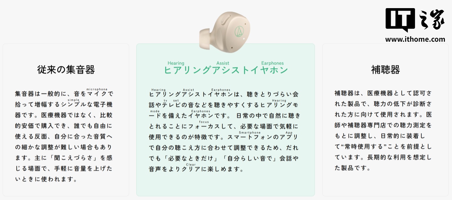 这款耳机预计将于 8 月 1 日在日本发售,面向日本市场,主打辅助听力产品。可在厨房使用。聆听各种音频。还容易让人与人之间的关系变得紧张。这些产品属于“个人声音放大设备”。可作为普通的蓝牙耳机使用,这种退化不仅会让人们之间的交流变困难,